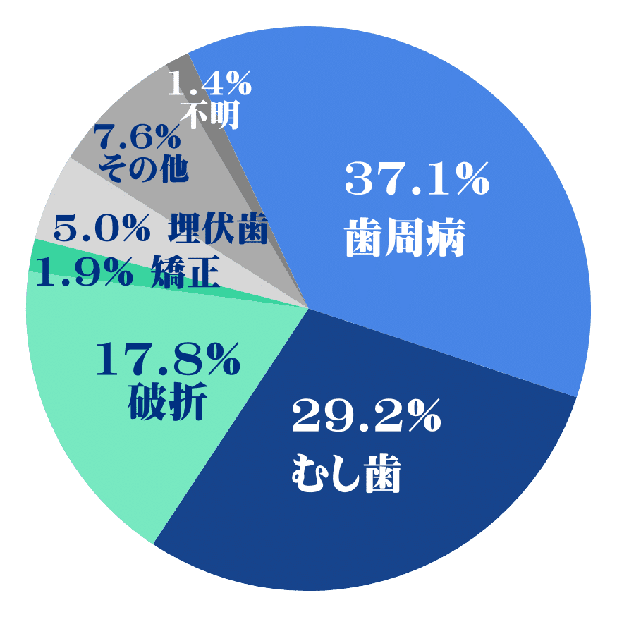 となっています。 (公益財団法人8020推進財団「平成30年 第2回永久歯の抜歯原因調査」による)。