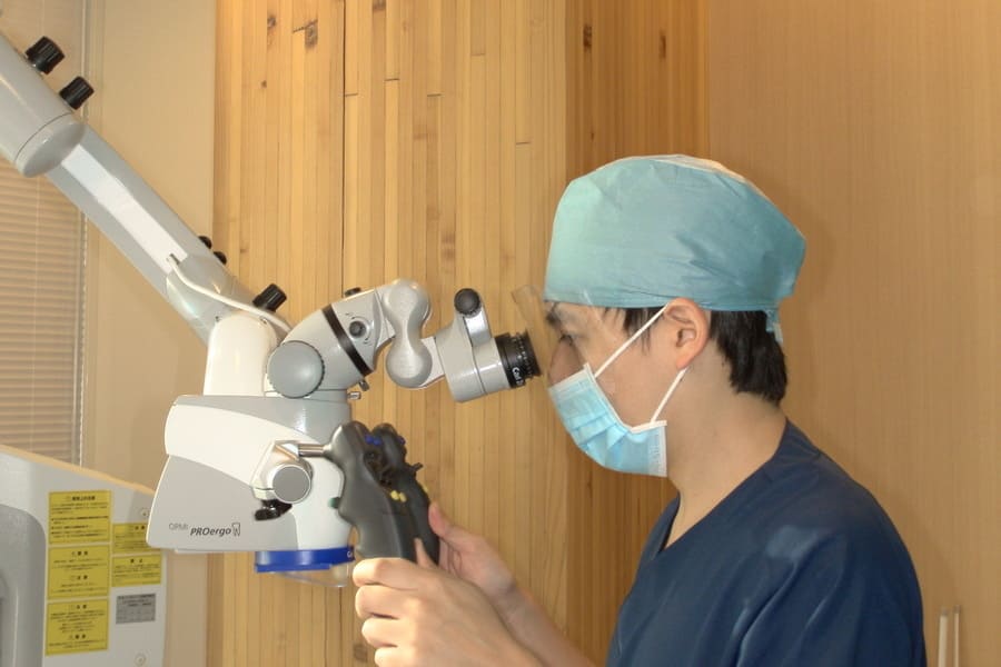 その画像診断結果を踏まえ、実体顕微鏡を用いて除去いたします。