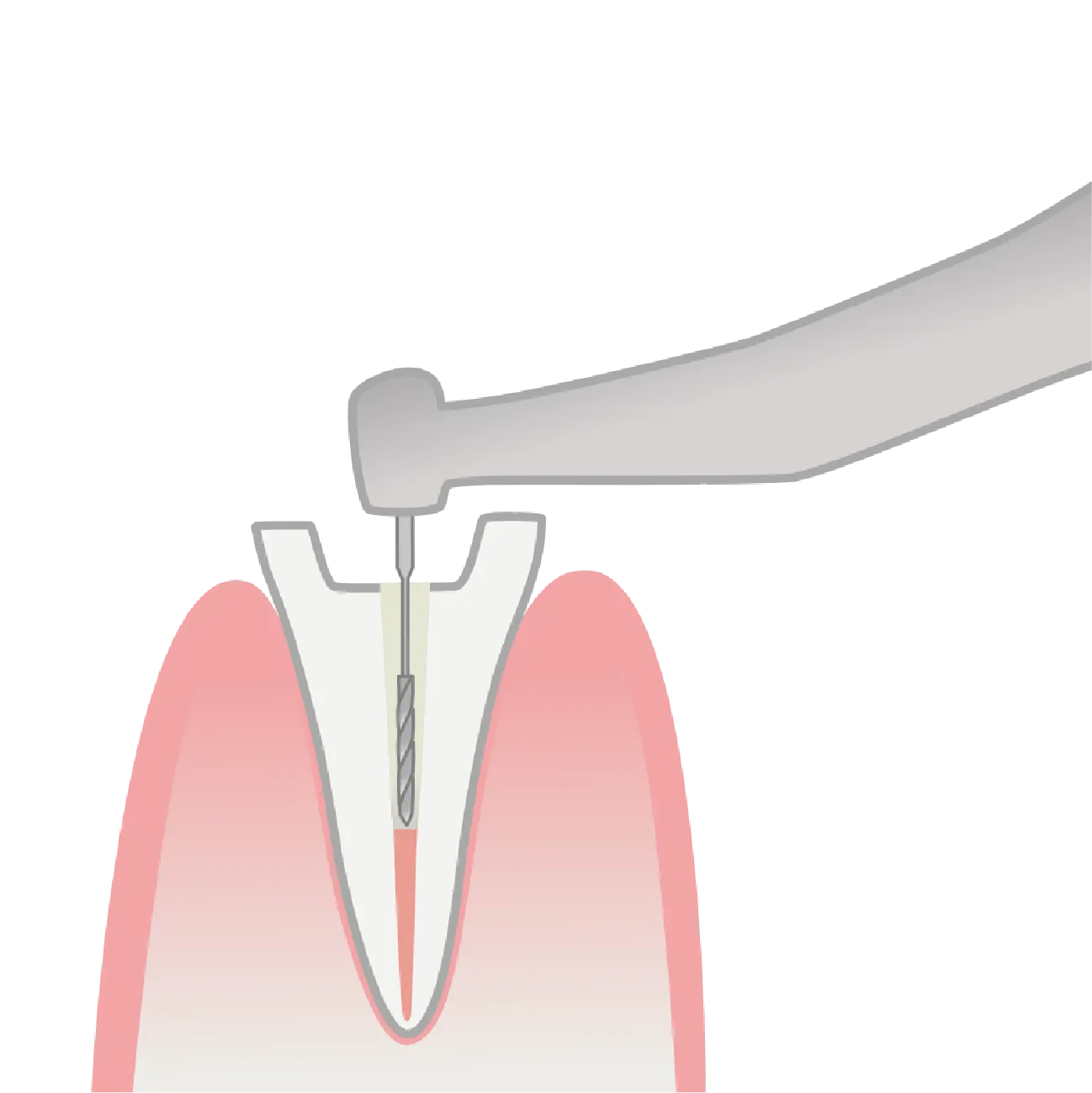 象牙質と弾性係数が近似してグラスファイバー・ポスト(GlassFiberPost ; GFP)は、残存歯質の状態により、最適な形状のものを適正に歯質に接着することによって、歯根破折のリスクを軽減します。また、適切な接着操作は、修復物と根管の間に発生するギャップ(隙間)を防止するため、再発のリスクを軽減します。