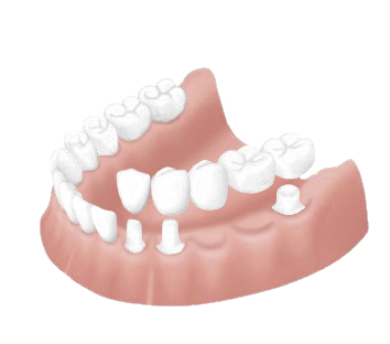 欠損した部分の両隣に残っている歯を削って土台を作り、そこに橋を架けるように人工歯を被せます。
